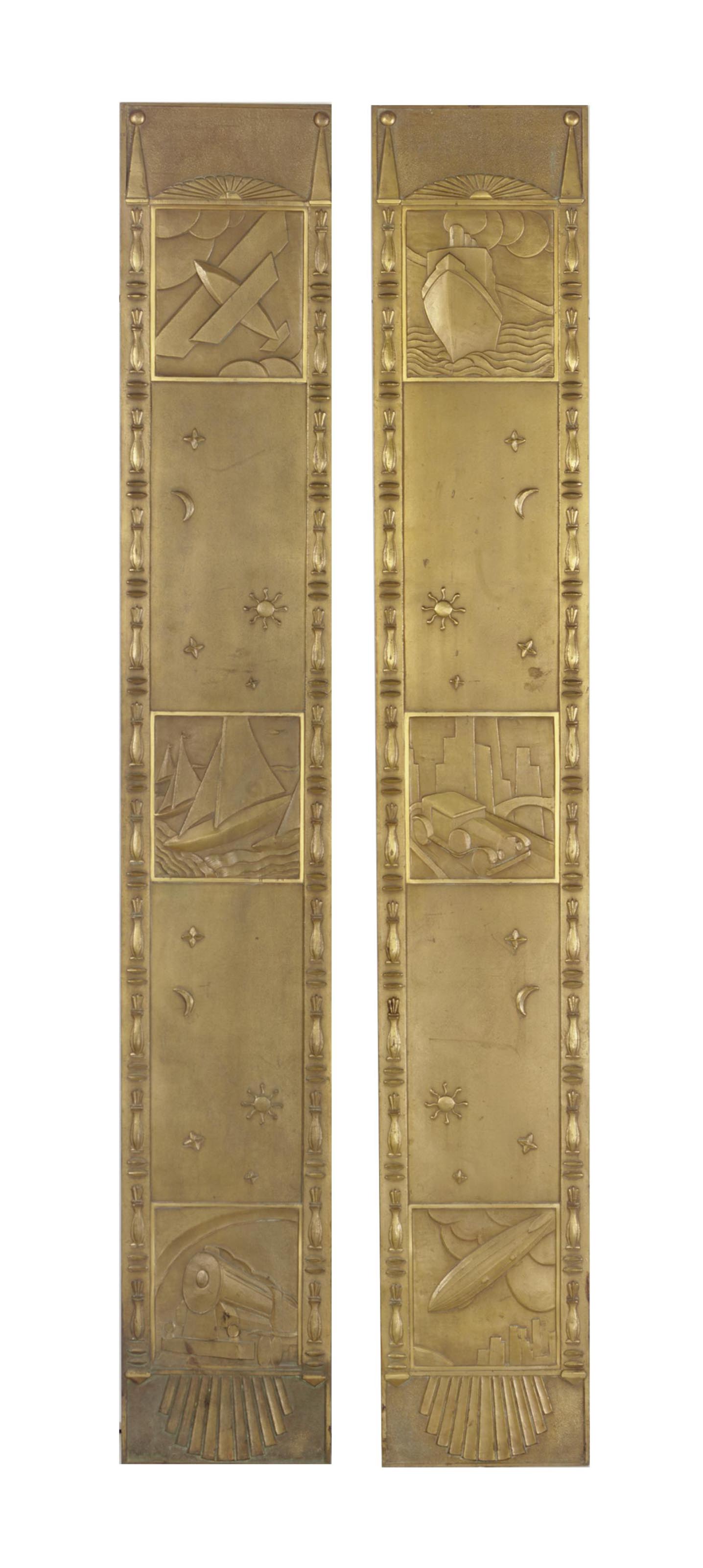 A Pair Of American Art Deco Gilt Bronze Architectural Panels