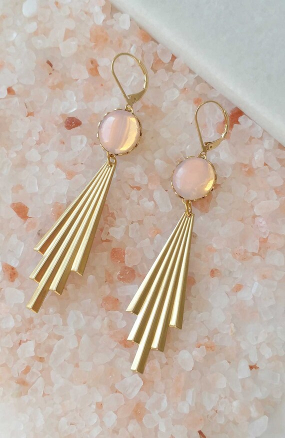Opal Pink Earrings Art Deco Style Earrings Geometric Earrings Pink And Gold Earrings Aurora Earrings Sd1244