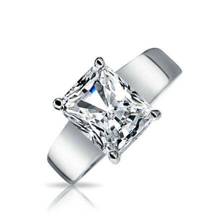 Simple Art Deco Style 3ct Solitaire Rectangle Radiant Emerald Cut Aaa Cz Engagement Ring Wide Band 925 Sterling Silver