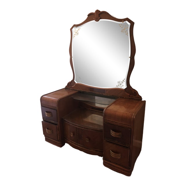Antique Art Deco Waterfall Vanity Mirror Bench For Sale