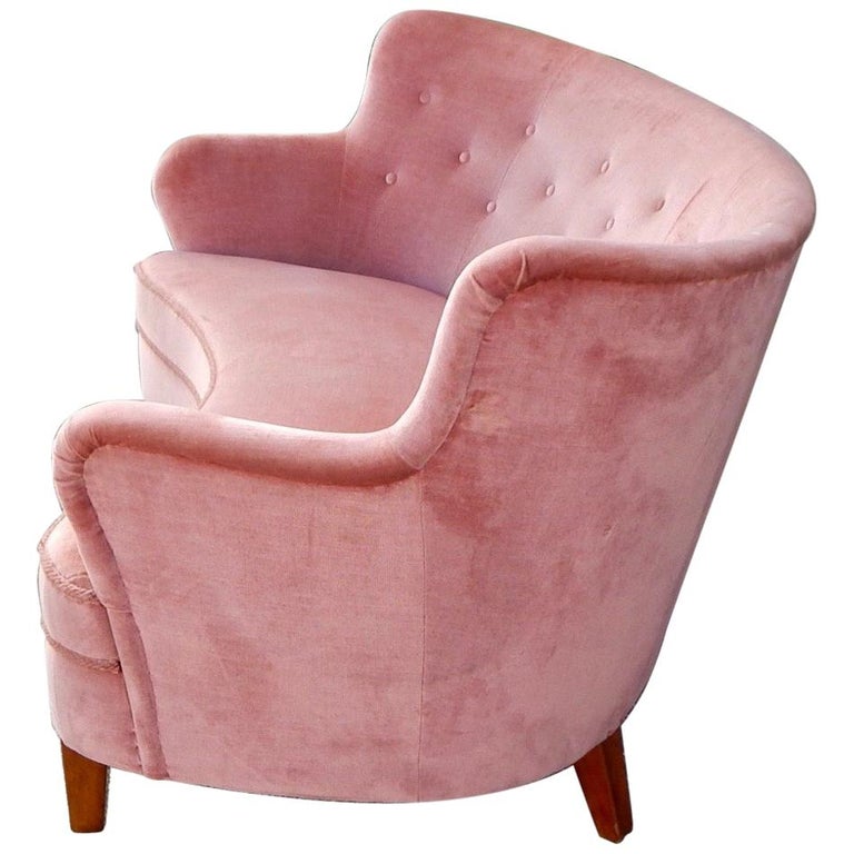 Swedish Art Moderne Wing Backed Sofa In Rose Velvet Circa 1940