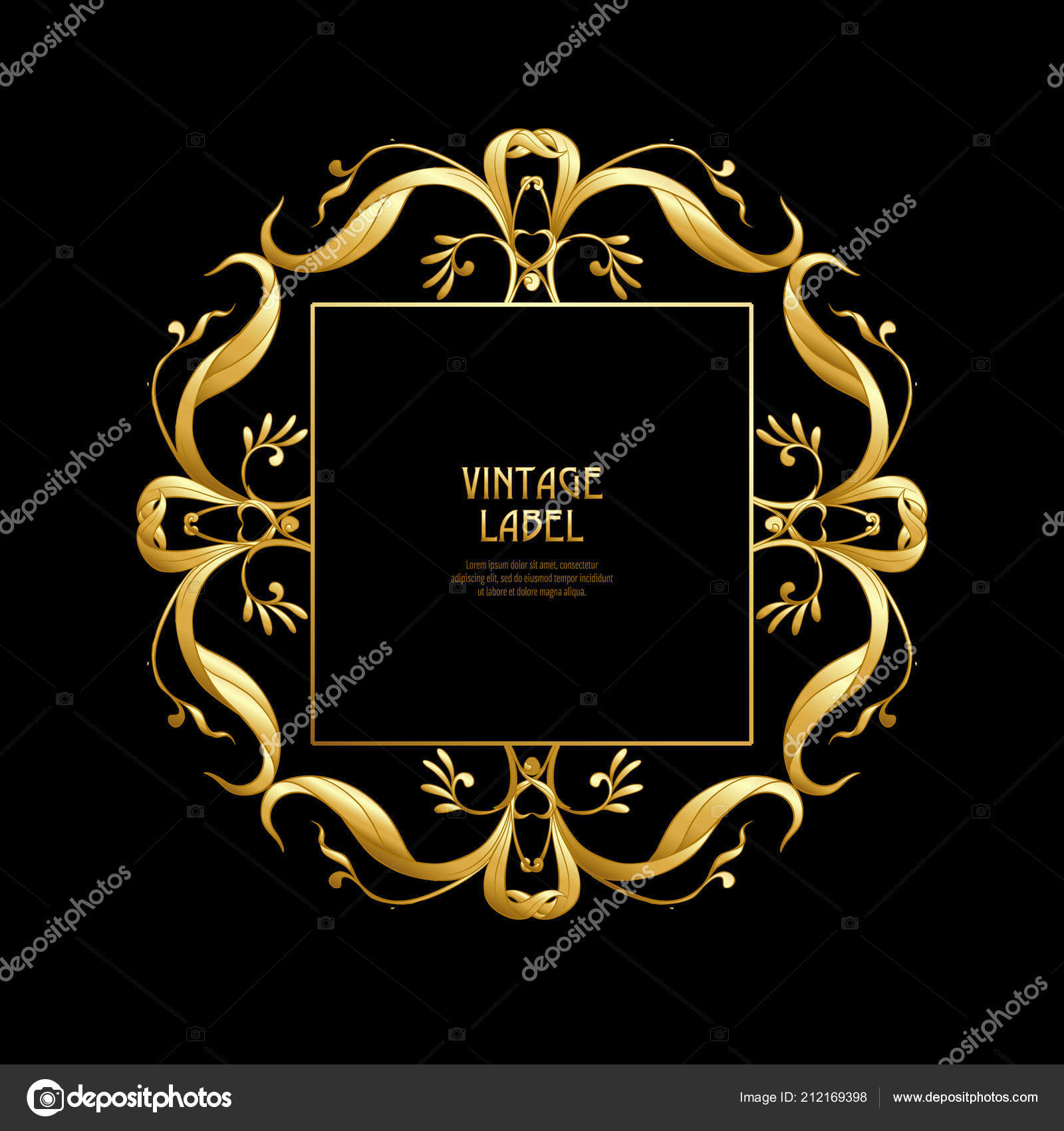Frame Border In Art Nouveau Style In Gold Color On Black Background