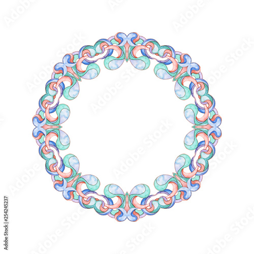Elegant Round Had Drawn Watercolor Pattern Frame Of Ethnic